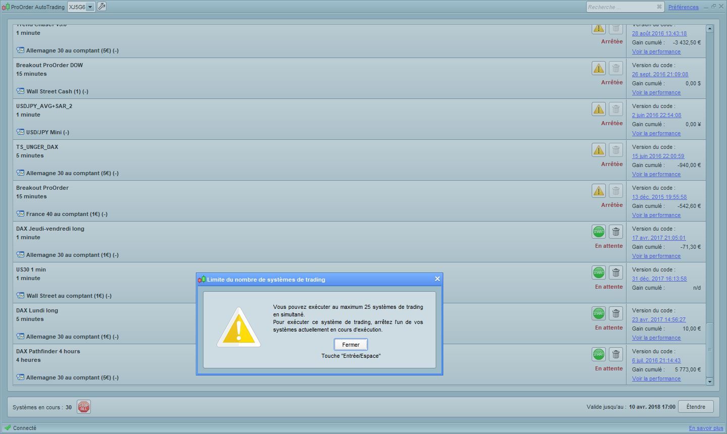 Si je veux en faire fonctionner plus, je dois limiter à 25 stratégies.