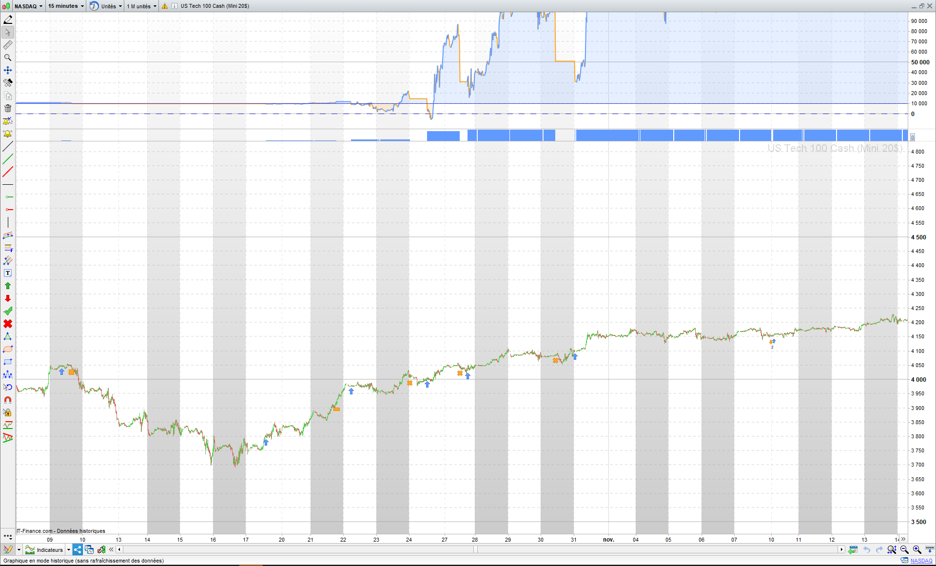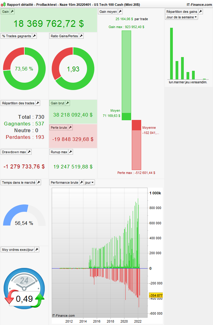 En essayant d’optimiser “le calcul de la taille de la position” j’ai remarqué les tests suivants sur le nasdaq 1 million d’unités en 15 min:
