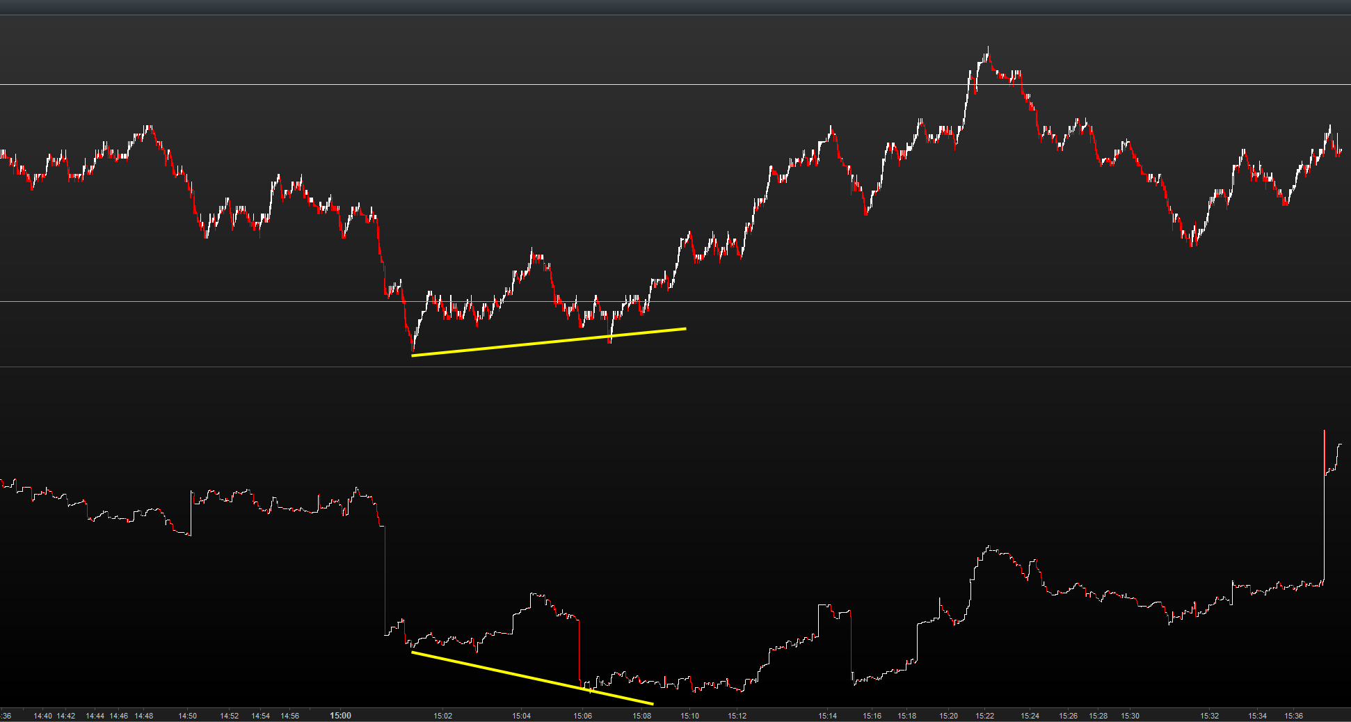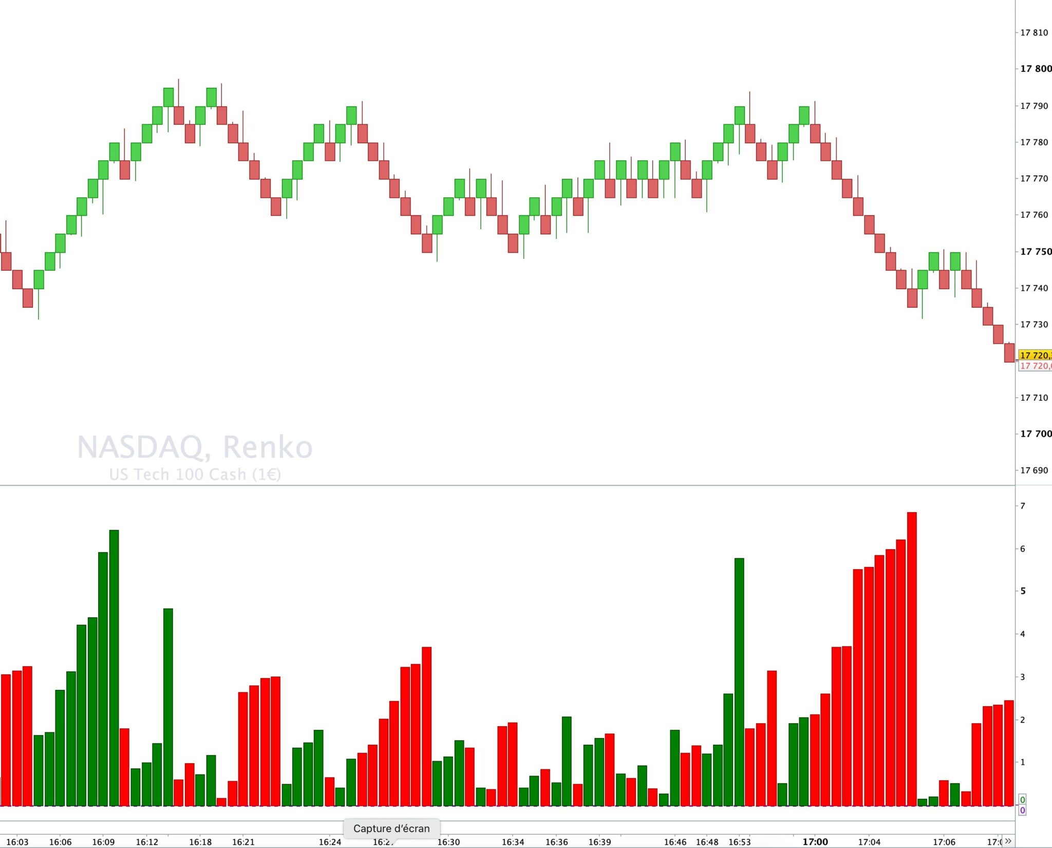 Sans faire trop de blabla, je porte une grande attention sur la corrélation ou décorrélation que l’on peut observer entre le Prix et le Volume(effort et résultat), c’est pourquoi si c’est aussi ton crédo, je t’invite à t’intéresser au CVD(Cumulative Volume Delta) au lien suivant qui devrait t’apporter une vue complémentaire: https://www.prorealcode.com/prorealtime-indicators/monster-cumulative-delta/