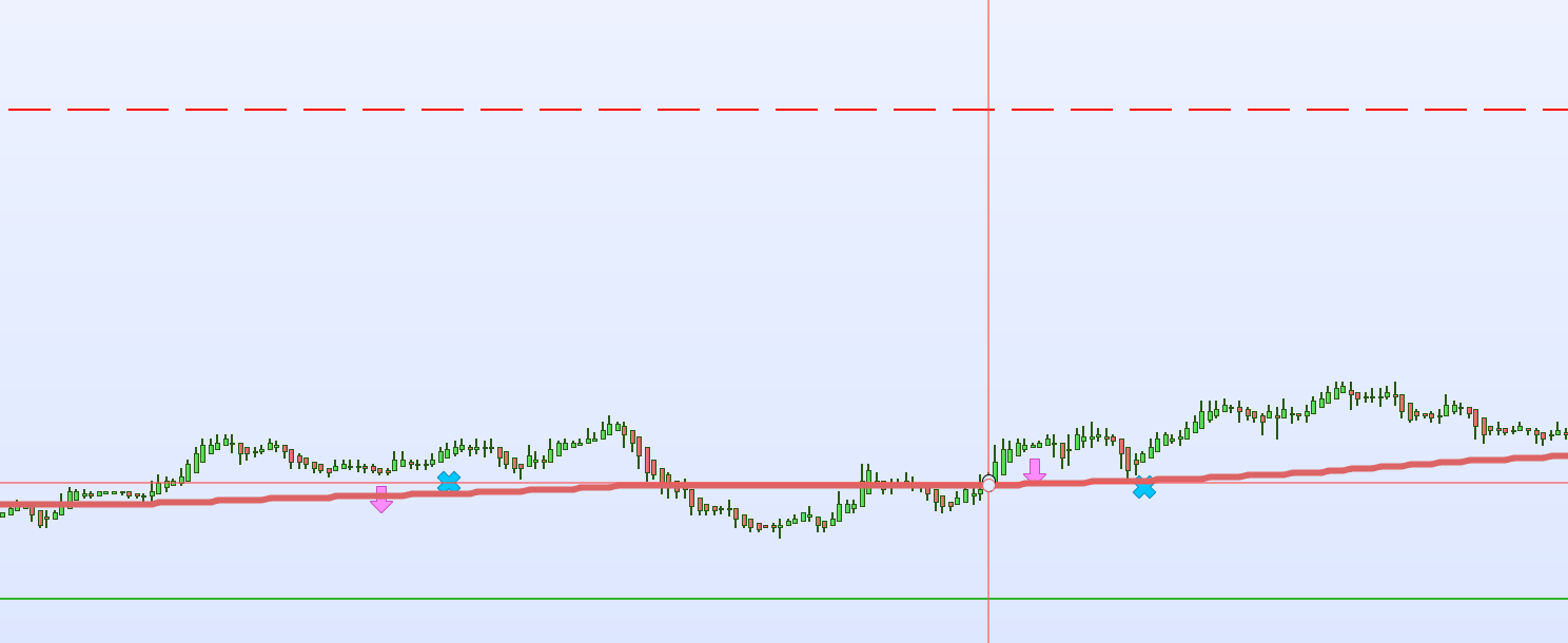 2-Cuando entramos, si el precio está por debajo del filtro y lo cruza en las siguientes 2 velas, entonces cerrar.