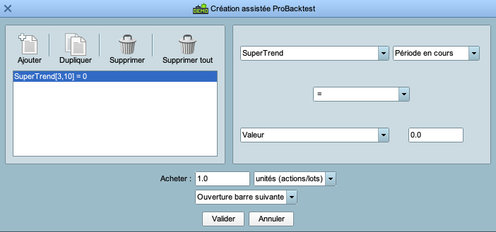 J’essaie de faire un backtest pour tester une stratégie à l’aide de l’assistant création simplifiée , mais je n’arrive pas à indiquer la condition suivante en utilisant le wizzard :