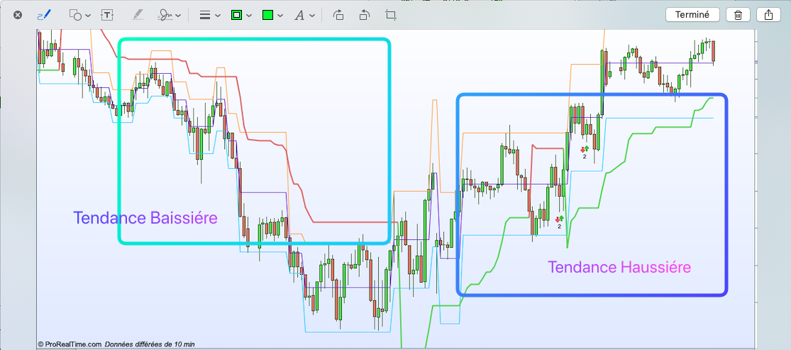 Donc si je comprends bien, il faut prendre les signaux en UT 5 minutes avec les infos du SuperTrend 30 minutes ? Idem pour les bandes de Mogalef ?