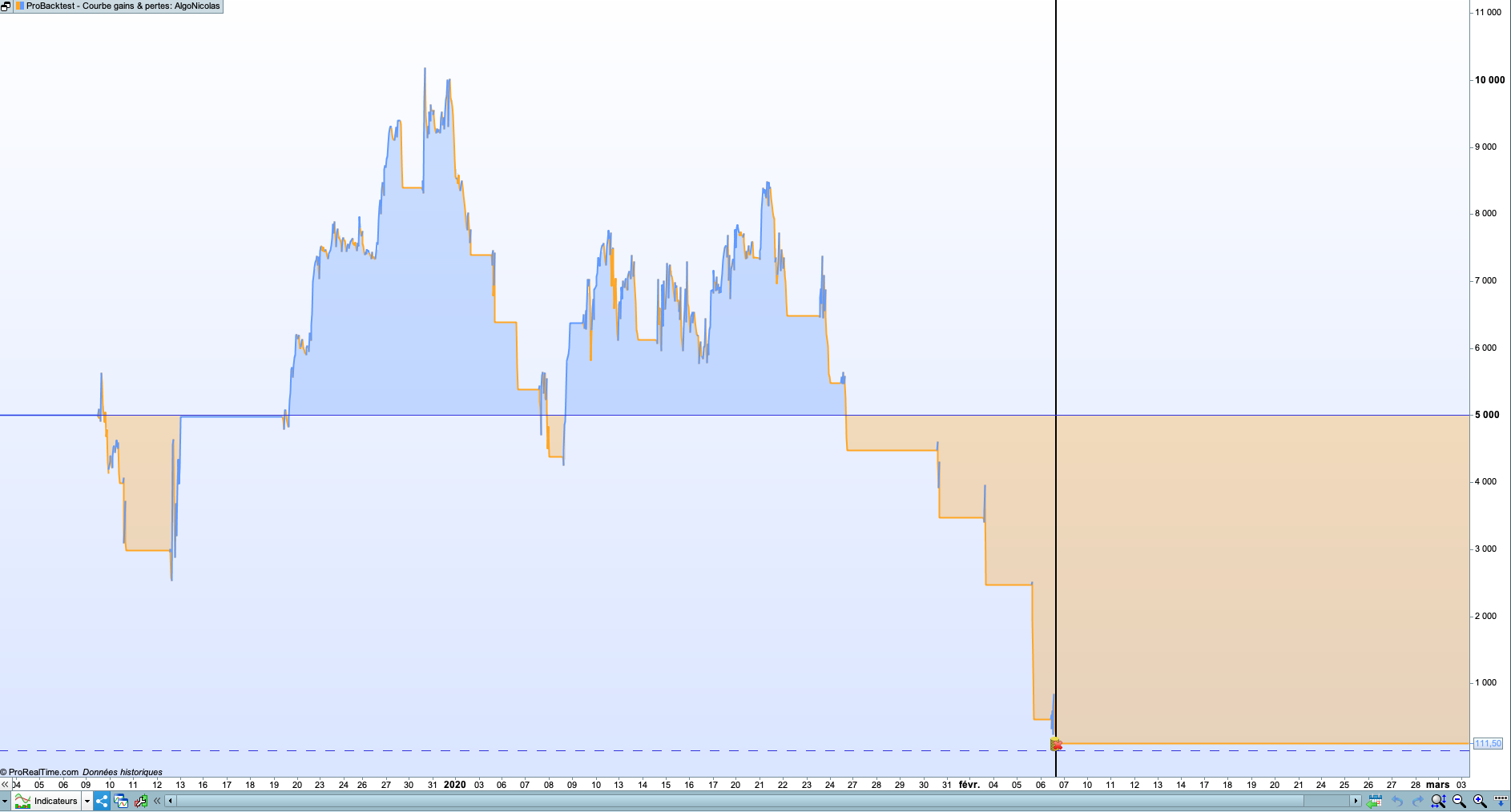 Les résultats du backtest ne sont pas corrects pour l’instant car j’ai du mal à intégrer l’algo que j’ai en tête ( première partie de l’algo ci dessus ).