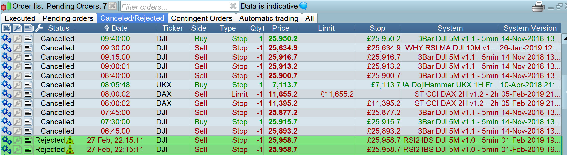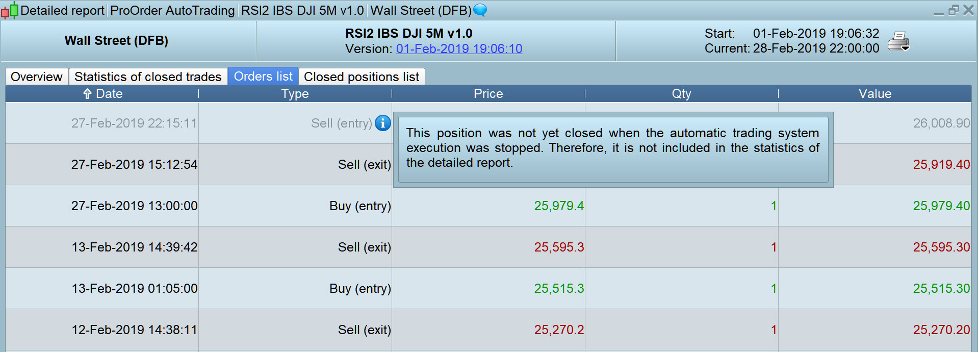 (As for a backtest of the same System … a buy was executed on 27 Feb 19 at 22:15 @ 26,013.7 … but I guess that is just confusing it even more!? :) )