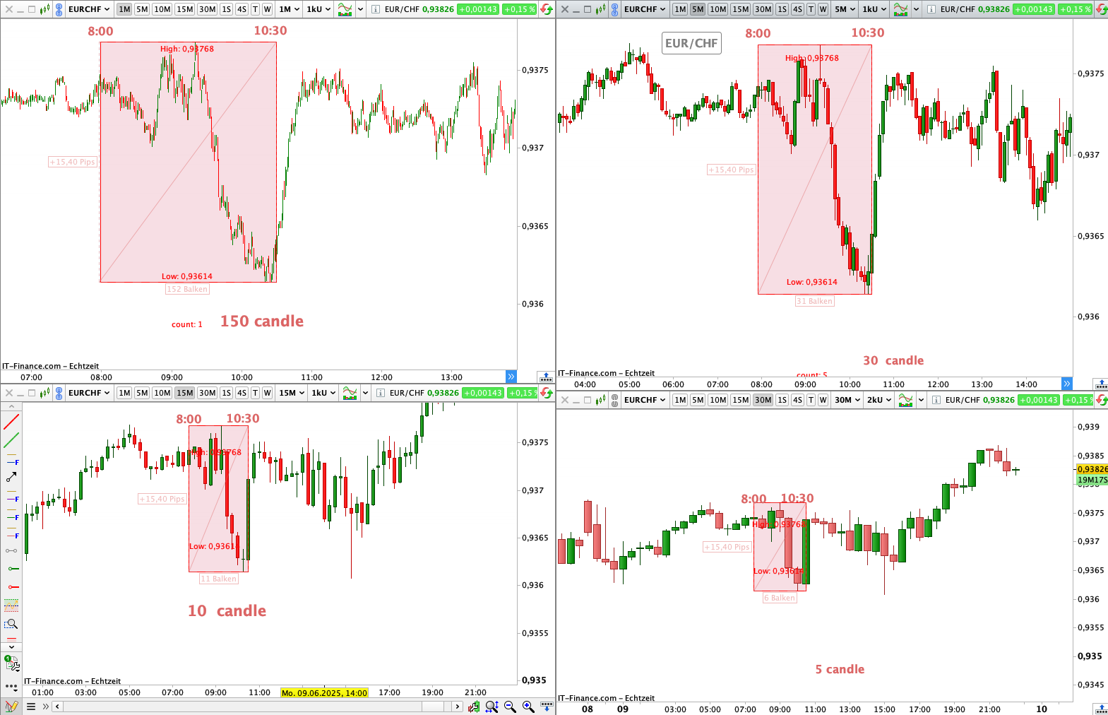 cómo se puede programar que el indicador de RBO en el horario de 8:00 a 10:30 muestre un contador de velas desde el inicio del rango hasta el final para cada time frame. Es decir de m1 muestre 150 velas, en m5 30 velas, en m15 10 velas y en m30 5 velas, no consigo la formula adecuada.