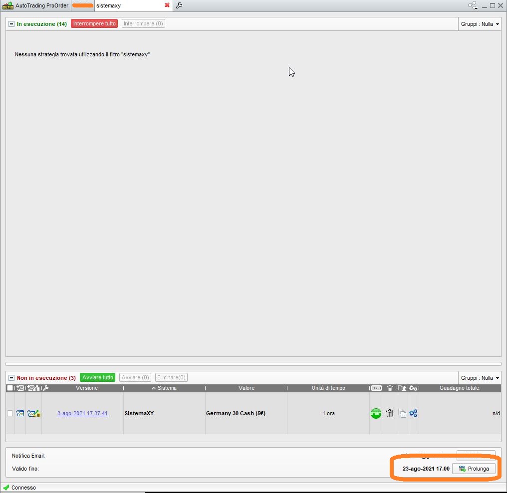 Roberto mi esce quando dovrebbe entrare mi fa un segnale acustico e mi esce messaggio strategia fallita poi nelle posizioni mi esce il simbolo del triangolo con il punto esclamativo al centro, questo sistema di trading è stato interrrotto perchè la sua validità è scaduta…..ogni volta io lo riattacco e non entra mai