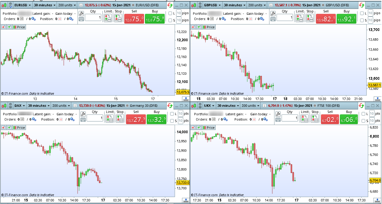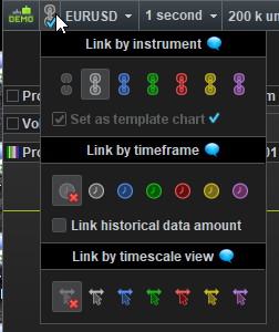 3. In the above combined view, is it possible to link charts across with timeframe? i.,e if i change timeframe from 30 mins to 1H on any one of the charts, all charts change to that timeframe?