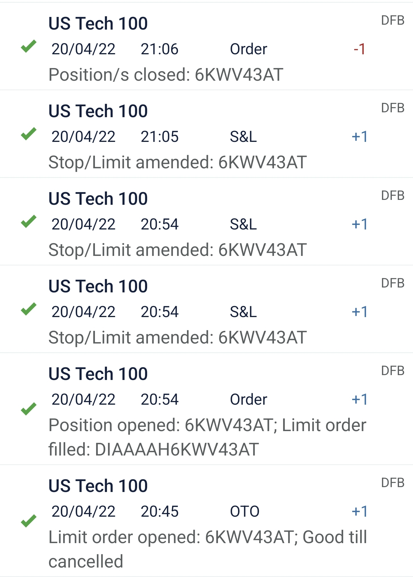 Once condition is met, limit order is opened (attached snap bottom 20/04/22 20:45).