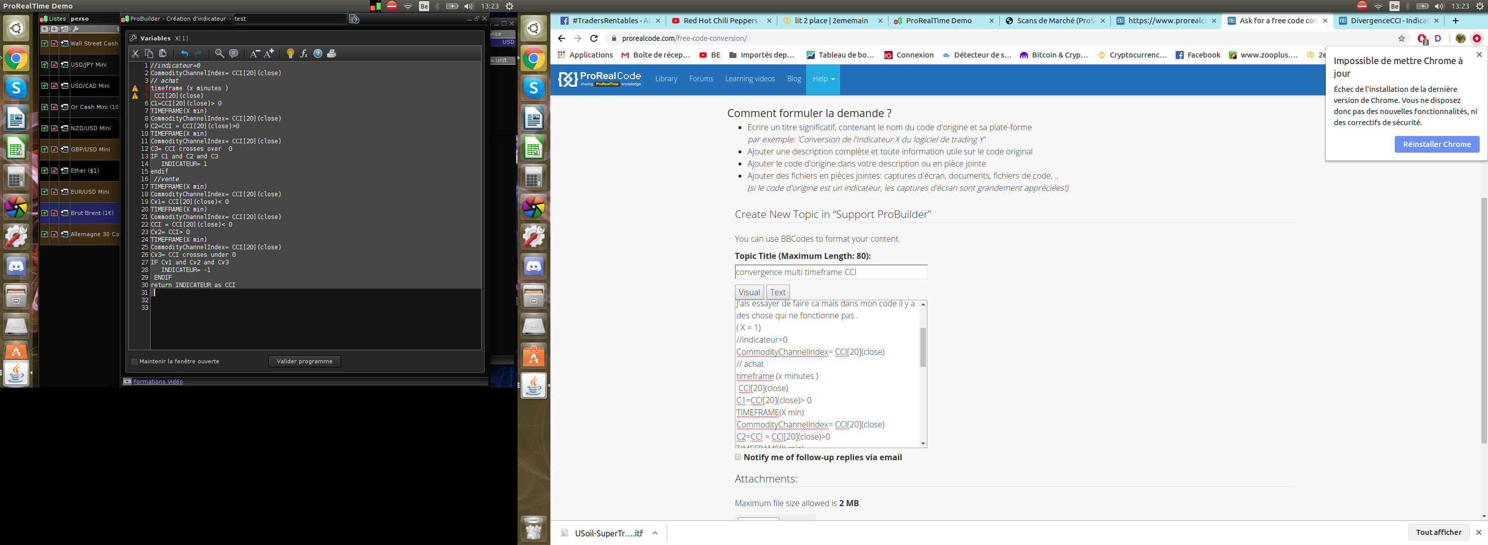 J’ais quelque difficulter a coder un indicateur pour une convergence CCI entre plusieur unitée de temps , je souhaite un batonnais quand par exemple en 15 min le cci est supérieur a 0 , et en 5 min aussi et que en 1 min ca croise 0 .