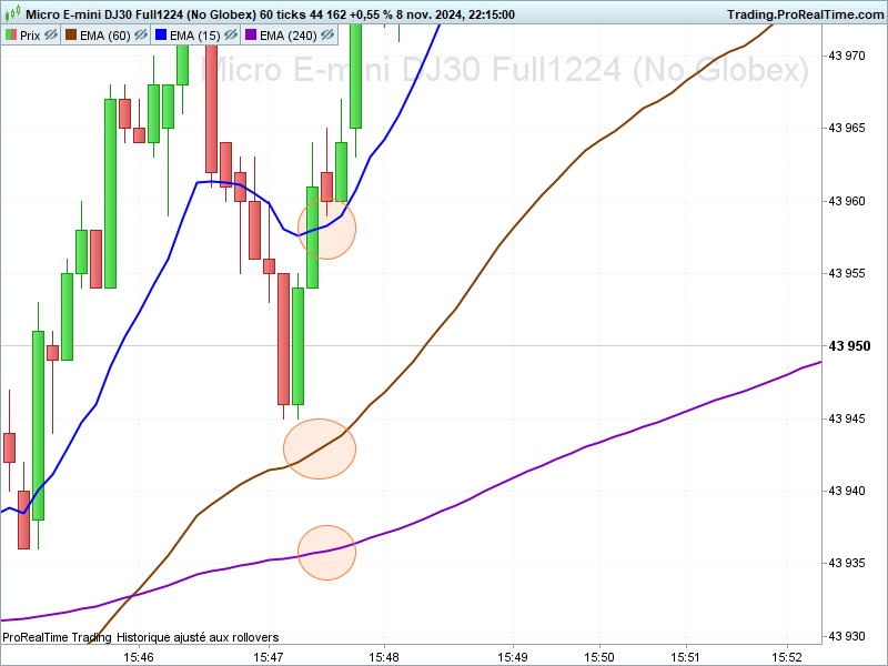 Par exemple, si j’ai la moyenne mobile exponentielle 15 en hausse et la 60 aussi ça colorie le fond pour donner l’indicateur de la direction….Je screen une image en entourant les moyennes mobiles….