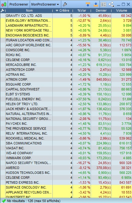 Si possible, j’aurai également besoin d’utiliser cette indicateur dans ProScreener, afin qu’il détecte les actifs qui viennent de passer du rouge au vert, ou tout simplement les actifs dans le vert.