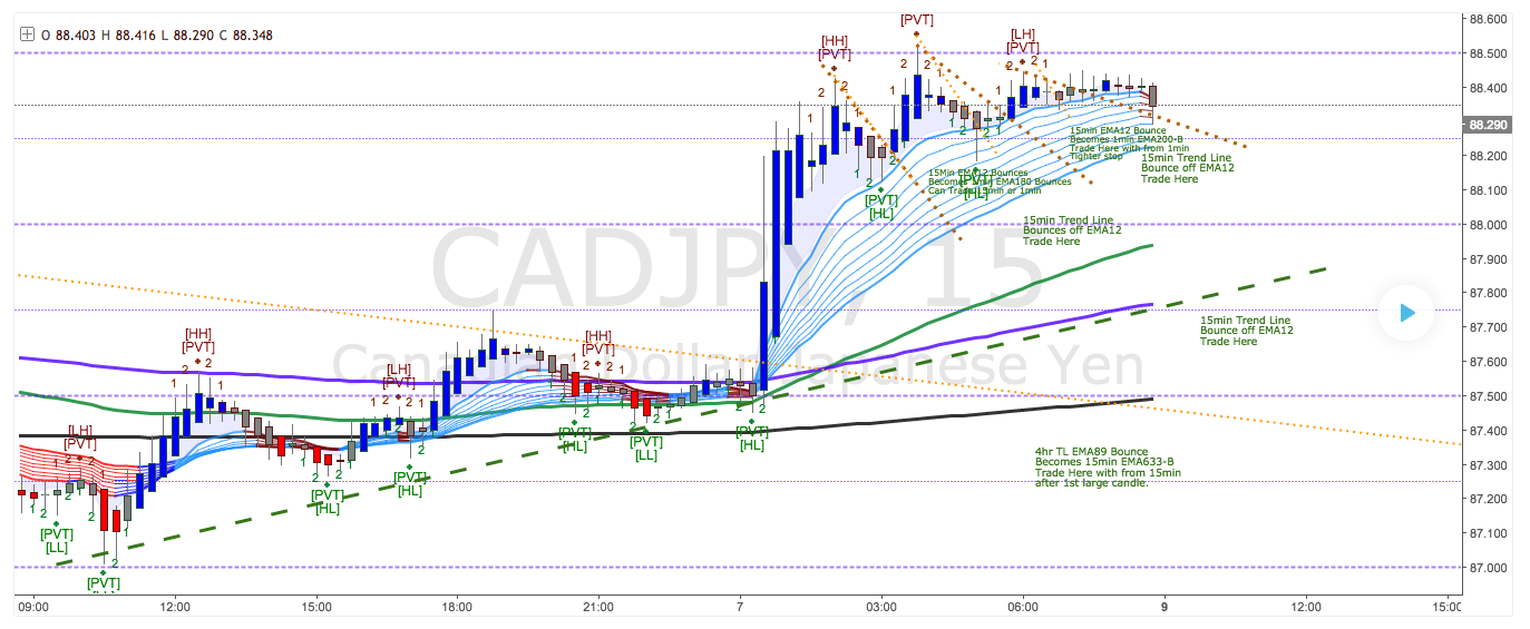 // - On the 15min chart what we’re looking for price to Pullback into the EMA5-12 Channel or EMA12-36 ribbon