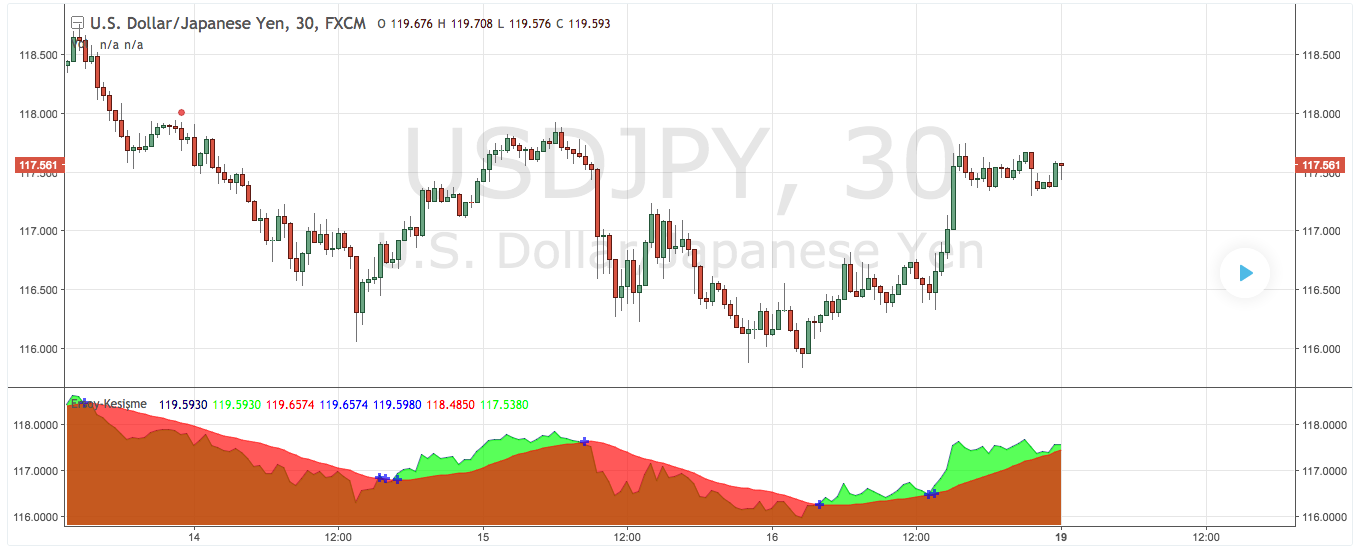 // - On the 15min chart look for the trend to resume and break through the drawn TL. The bar color needs to