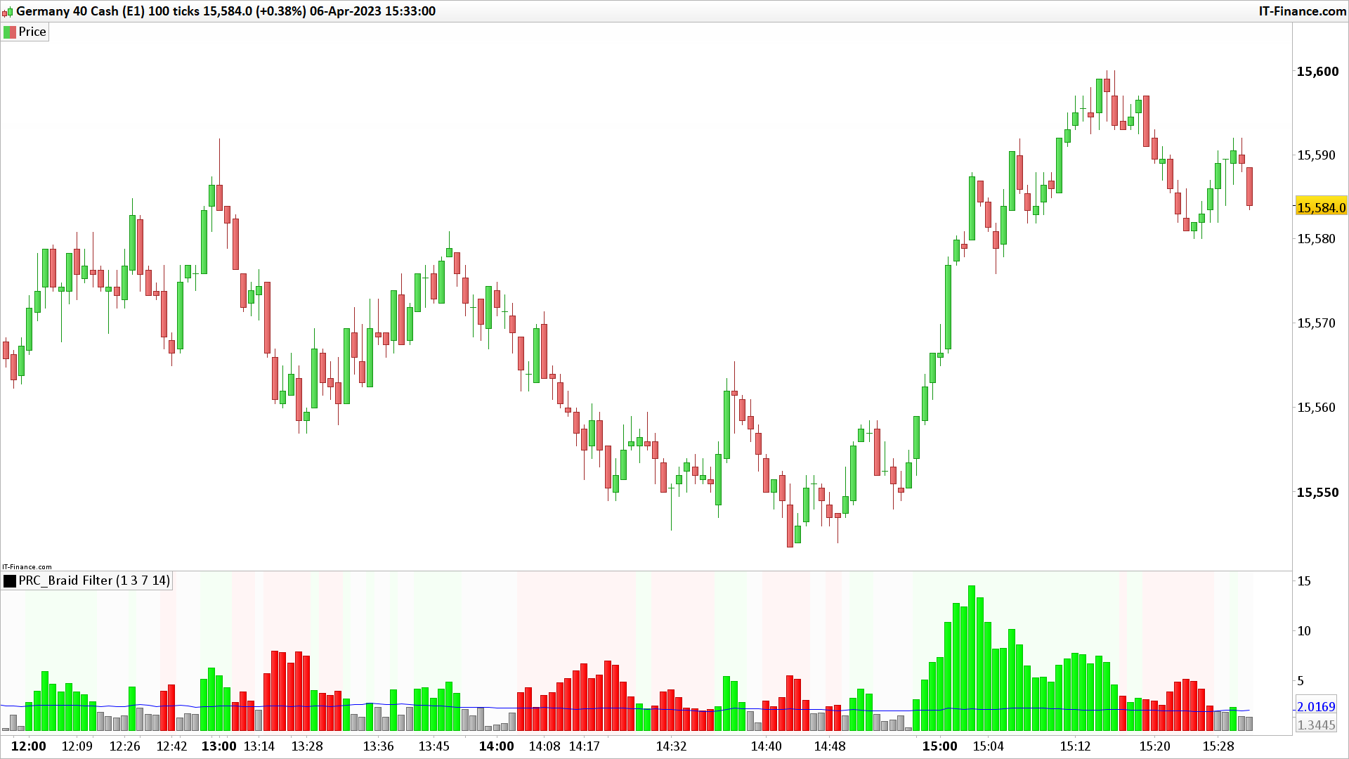 The Braid filter is a combination of MA crosses utilising different variations of MA’s which are then filter using an ATR. This works as an excellent primary confirmation tool when combined with volume.