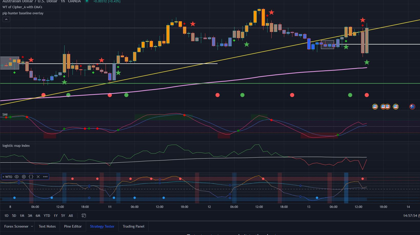 Ok here it is, I hope you dont mind I did not code color gradient of the curves? Do you need also candle coloring like in the original code, your screenshot is only about the oscillator though ..