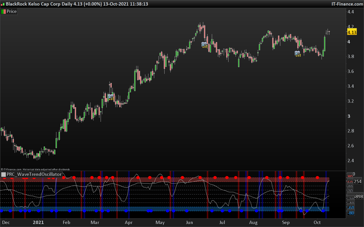 return wt1 as "Primary Wavetrend", wt2 as "Secondary Wavetrend", 0 coloured(120, 123, 134) style(dottedline) as "median", 40 coloured(120, 123, 134) style(dottedline) as "40", 20 coloured(120, 123, 134) style(dottedline) as "20", -40 coloured(120, 123, 134) style(dottedline) as "-40", -20 coloured(120, 123, 134) style(dottedline) as "-20", 80 coloured(239, 83, 80) style(dottedline) as "80", 60 coloured(239, 83, 80) style(dottedline) as "60",-80 coloured(33, 150, 243) style(dottedline) as "-80", -60 coloured(33, 150, 243) style(dottedline) as "-60"