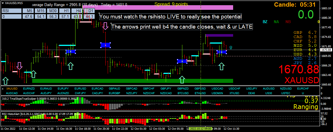 There is a variation of this Code called the RSI Histo Alert whereby if the histo level goes above or below a certain defined number (say 20) then an up or down arrow is posted under the candle.
