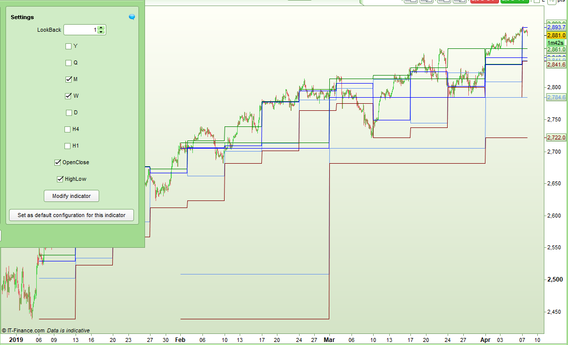 With this feature you can apply the indicator more than once to a chart and have the last three months OHLC values shown for example.