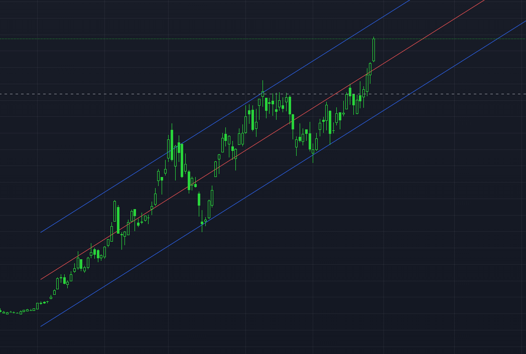 upper := line.new(bar_index – lengthInput + 1, upperStartPrice, bar_index, upperEndPrice, width=1, extend=extendStyle, color=color.new(colorUpper, 0))