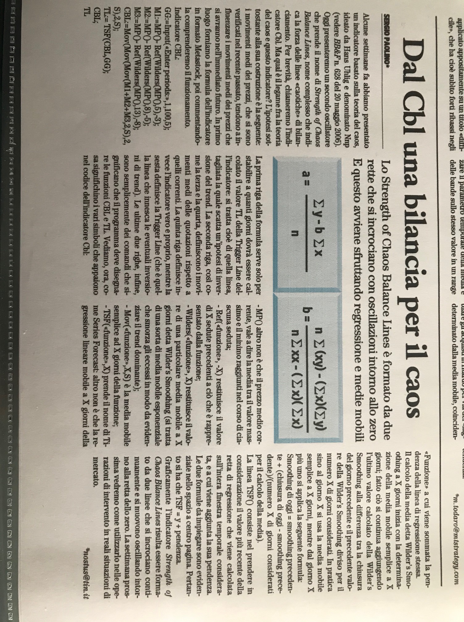 Ciao a tutti, ho ritrovato dei vecchi articoli di Borsa&Finanza in cui viene descritto questo indicatore. Come detto nel titolo il linguaggio è quello di Metastock.