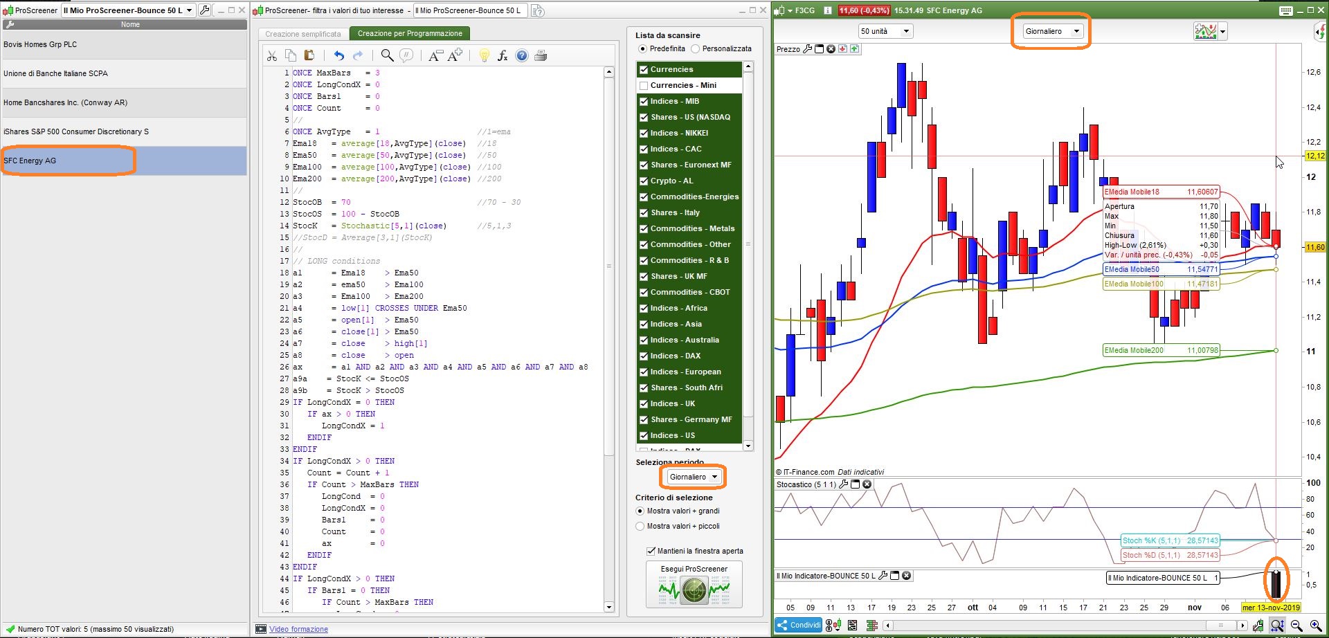 O provato da fare i screener short per 18 e 50, ma non sonno 100% si sono giusti. le posto chui