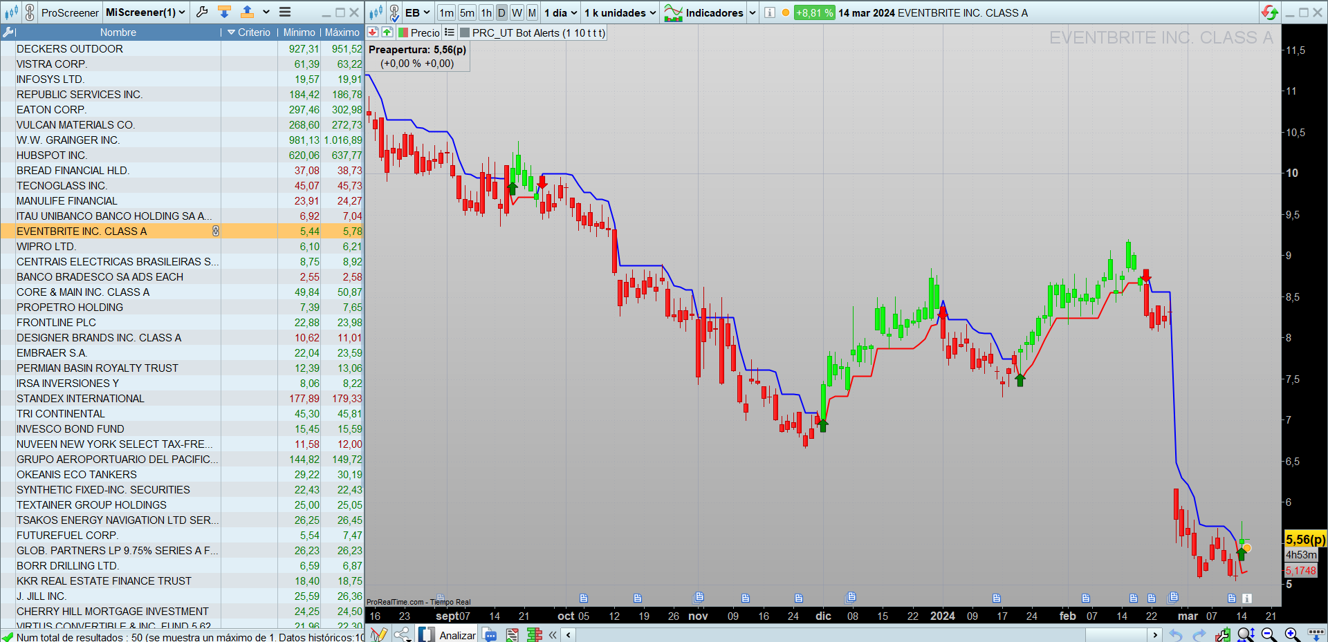 ¿Cómo convierto este indicador en un filtro donde obtengo los resultados de la acción que tiene una flecha verde?