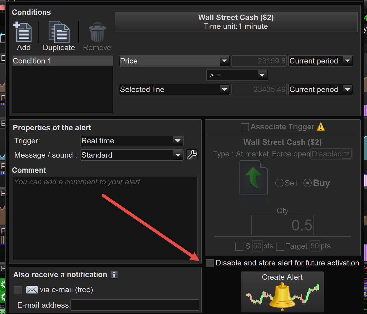 The wording alongside the box states … Store Alerts for future Activation.