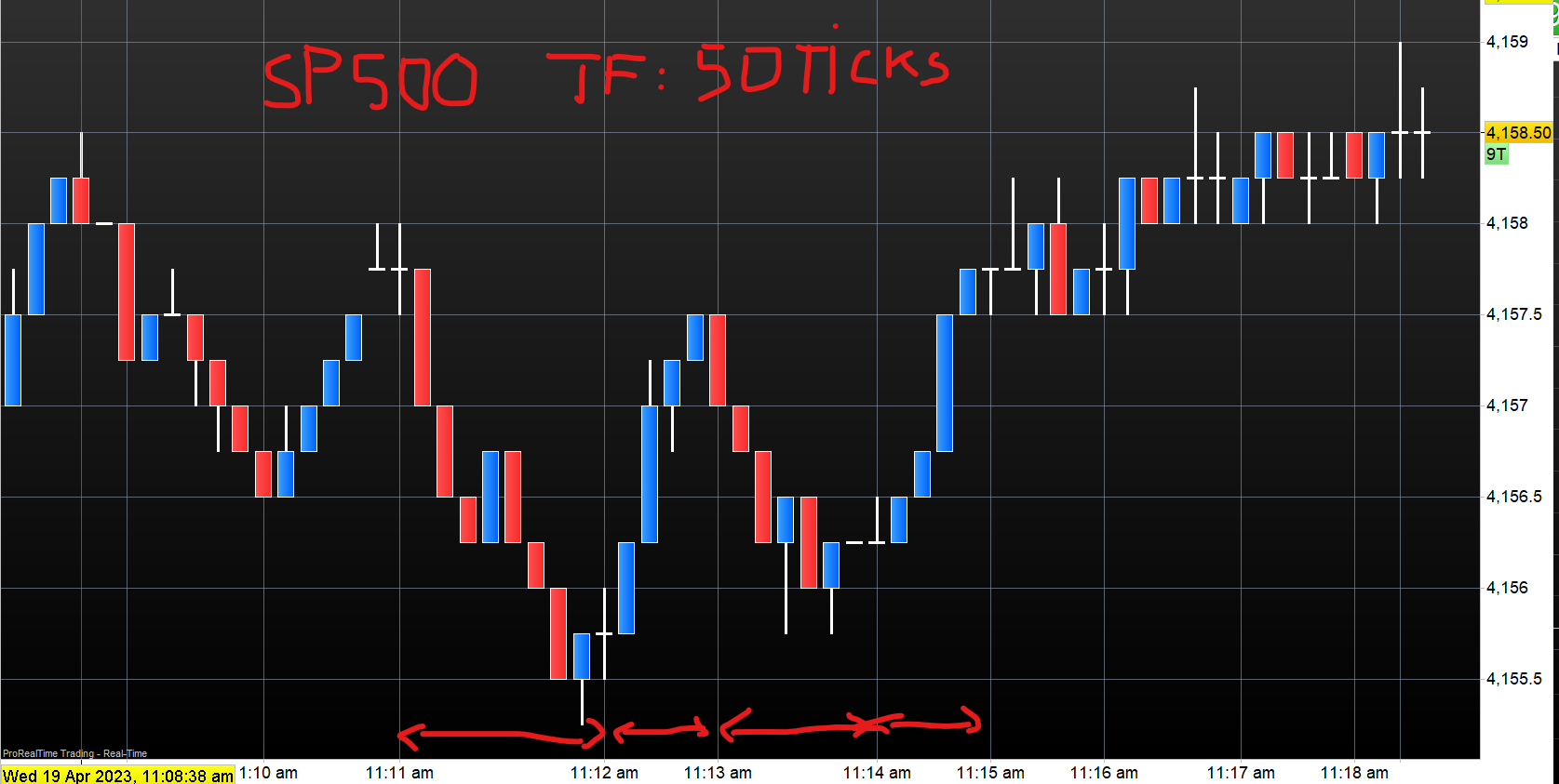 Adapting the code to count on (x) ticks timeframes red and green candles for intervals of 10 minutes instead of 1: