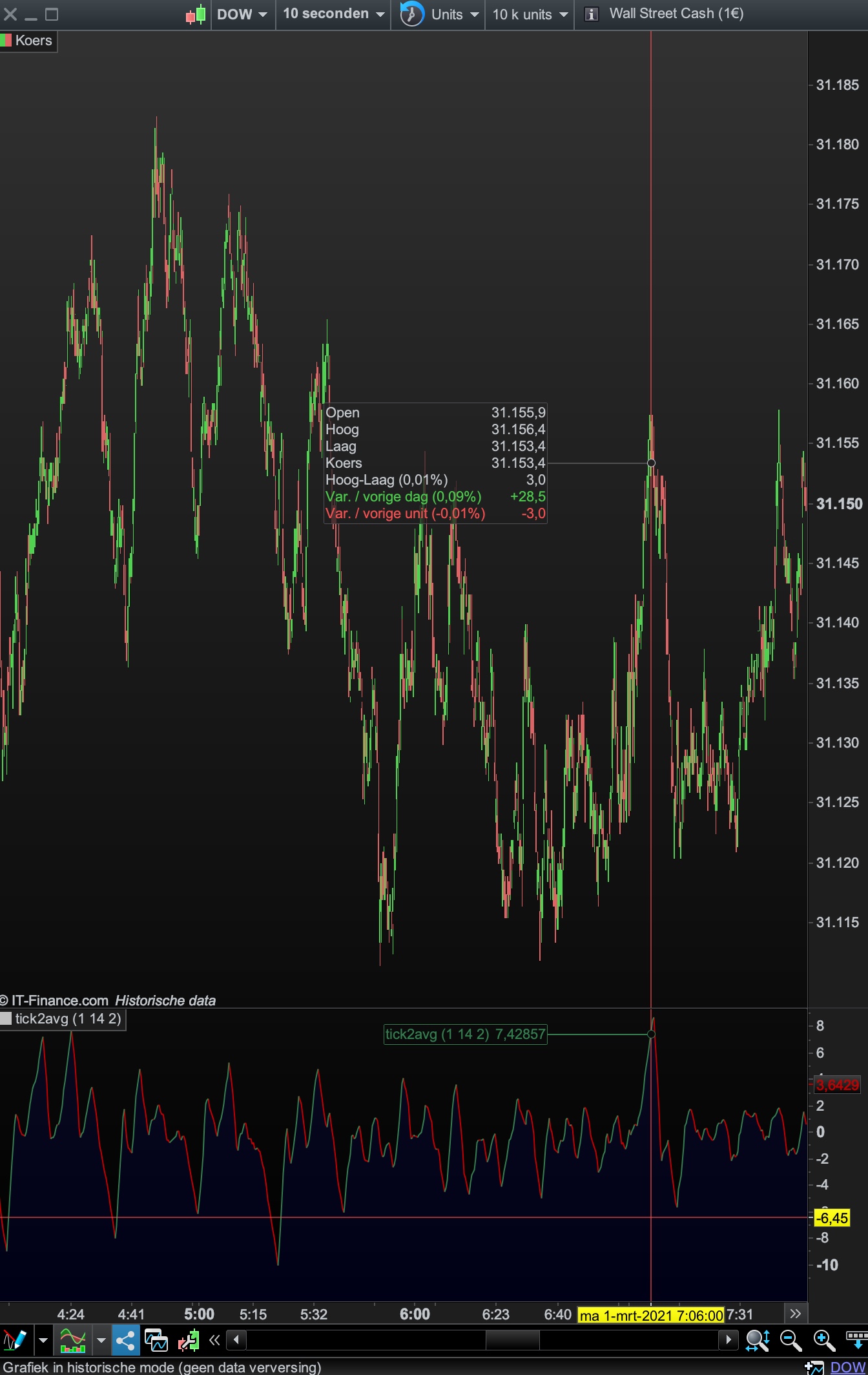 Do you know if there is a way in PRC of reading/counting intraday ticks? The best I could do is to build the below indicator to be applied to an (x)ticks chart. This way I can see when the number of ticks in a certain amount of time have exceeded a defined threshold (say 15 mins as in the code below). However this indicator lacks a fundamental information: direction. Any way that I can read Up and DOWN ticks from the “tick by tick” list?