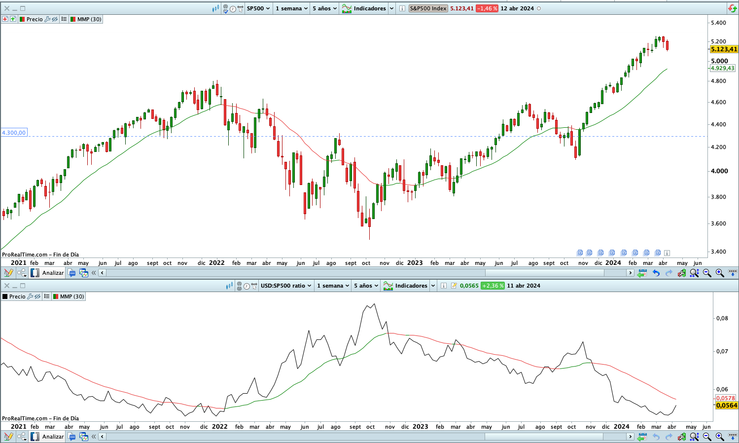 I have a work space with 2 charts (1) SP500, and 2) calculated spread UUP / SPY),