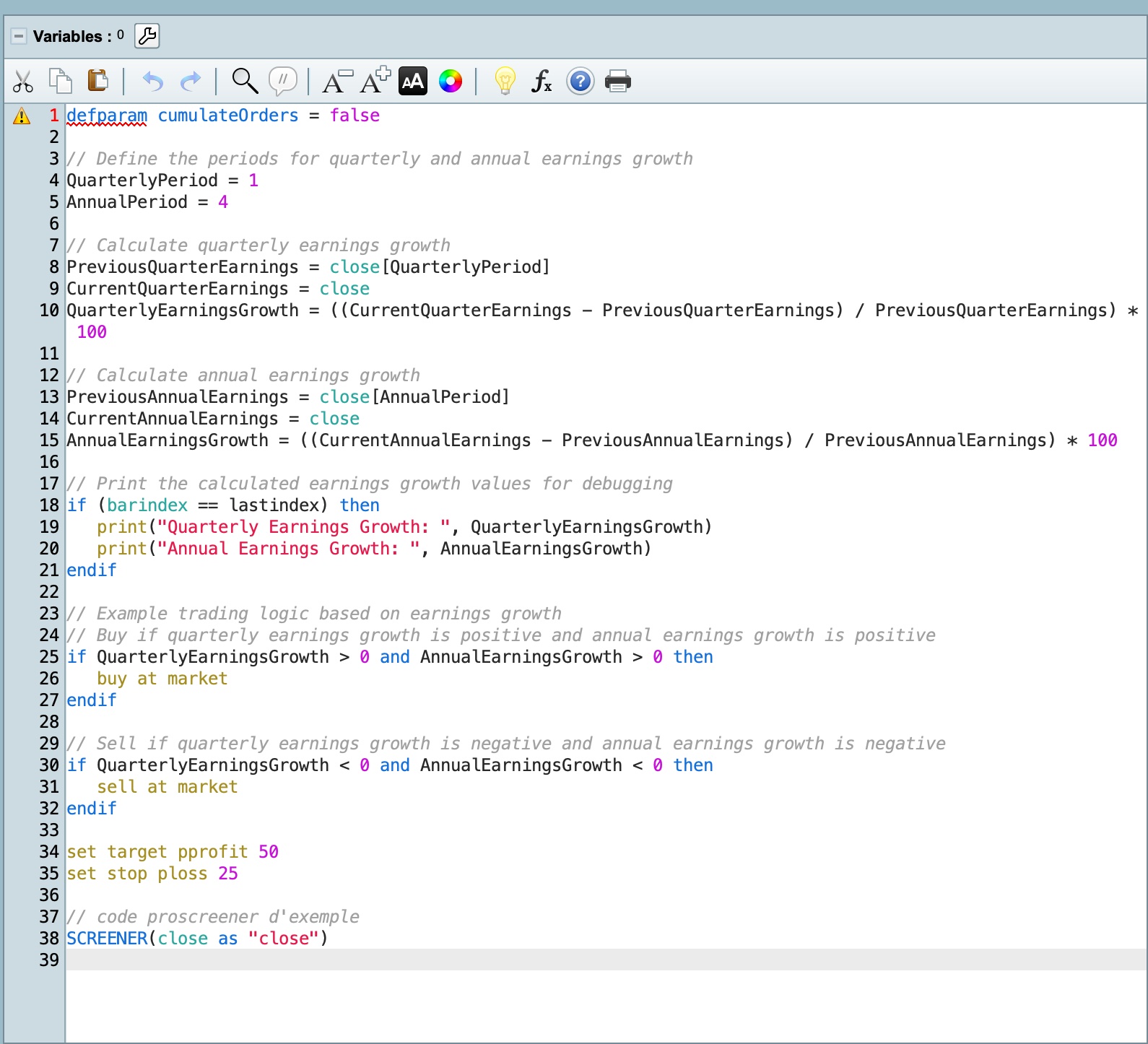 • Although ProBuilder does not support user-defined functions, you can effectively use its pre-defined functions and structure your code using labels and control structures to create powerful and efficient trading strategies.