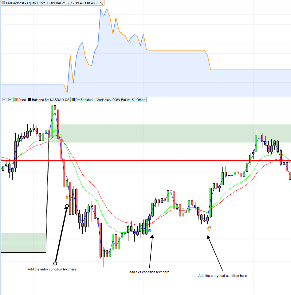 See attached. I want to draw text (or a symbol) for every entry and exit the back test has marked with arrows crosses etc.