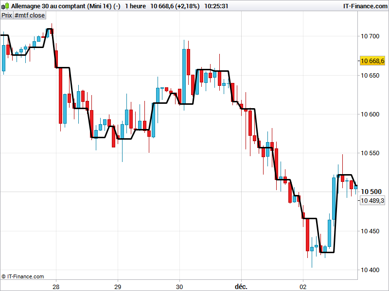 Il s’agit en fait de faire figurer par ex.sur un graphique en 1 h de l’euro/dollar,le graphique en 2h,voire en 3h,etc..de ce même euro/dollar.
