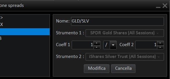 If so what you are getting on your charts is a spread between SPDR Gold Shares and iShares Silver Trust represented by the blue line, and on top of that you have a yellow curve representing DBB’s price (Invesco DC Base Metal Funds maybe?) which isn’t compared to anything, simply added on top of the GLD/SLV spread). If you want to compare DBB to another instrument/spread you have to create a new spread for it.