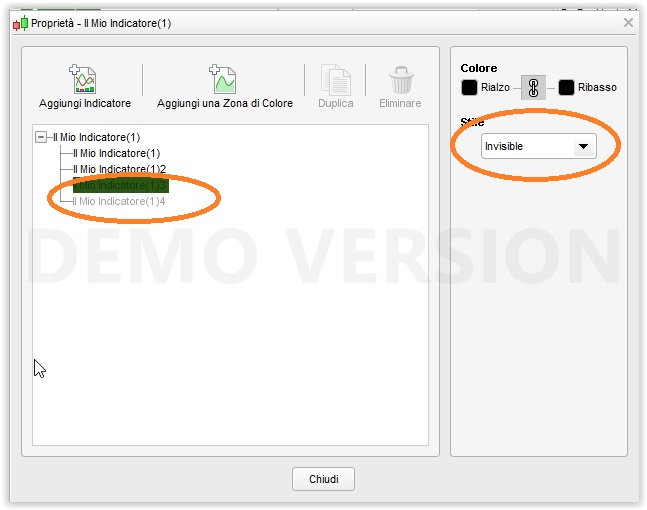 Però con questa modifica quando lo metti sotto al grafico ti visualizzerà anche le linee dello Stop Loss e del Profitto, che ti restrimgeranno molto la visualizzazione dell’indicatore, per cui ti suggerisco, tramite le sue proprietà, di rendere queste linee invisibili (v. foto allegata).