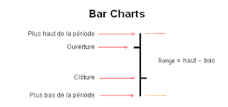 Concernant les Bar Chart c’est une représentation des fluctuations du prix en temps, comme le sont les chandeliers japonais. Les chandeliers japonais ont une origine asiatique, les Bar Chart une origine occidentale, mais la construction, l’information de base est la même! Bon courage…