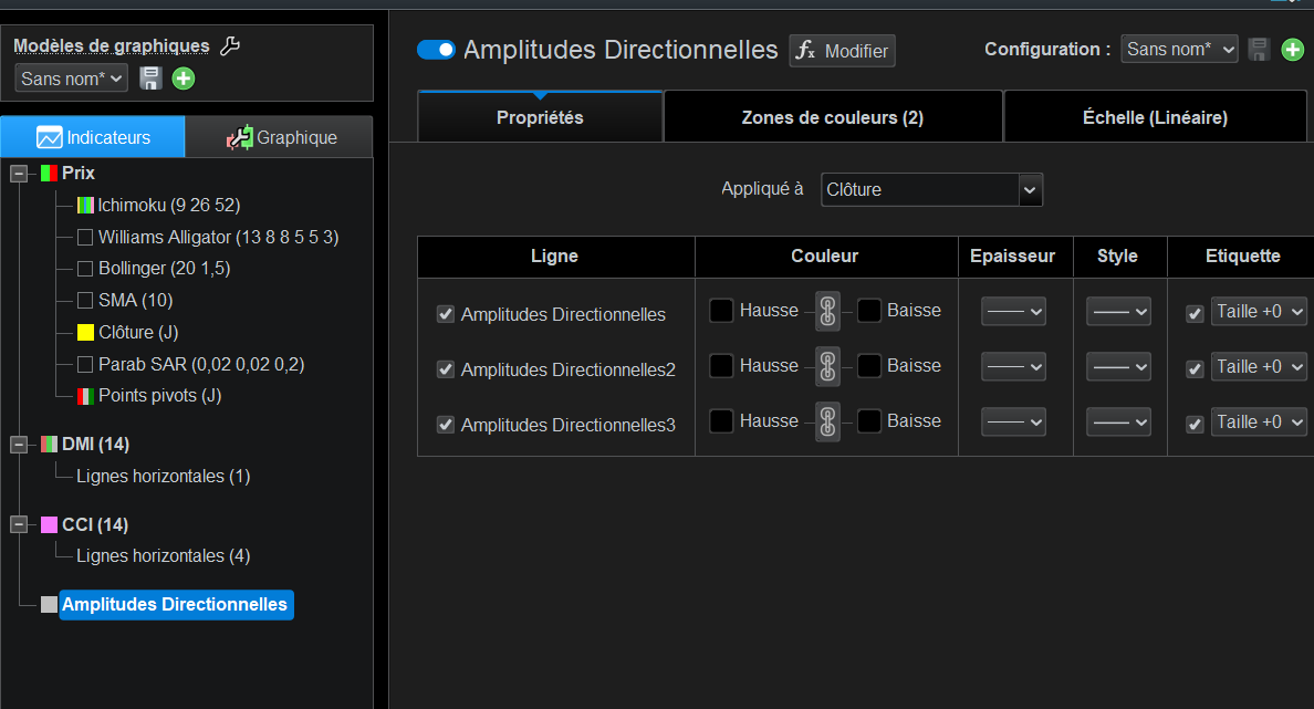 Vous pouvez modifier le type de ligne, la couleur et l’épaisseur à votre guise, via les paramètres de l’indicateur.