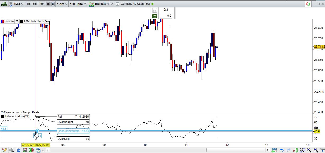 Cela imprime l’indicateur RSI et les deux lignes de surachat et de survente.