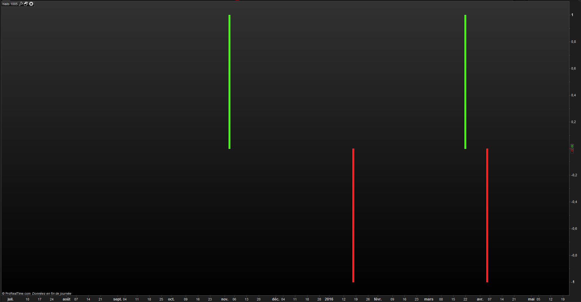 Et pour un code comme celui-ci, est-il possible de créer un histogramme (+1 / -1 vert / rouge) selon que la ligne de tendance est croissante ou décroissante ?