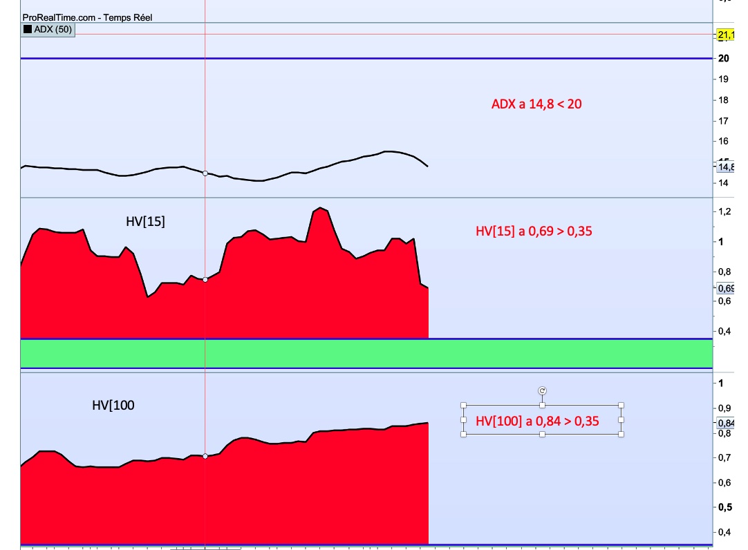 La volatilité historique a 15 périodes < au seuil de 0,35
