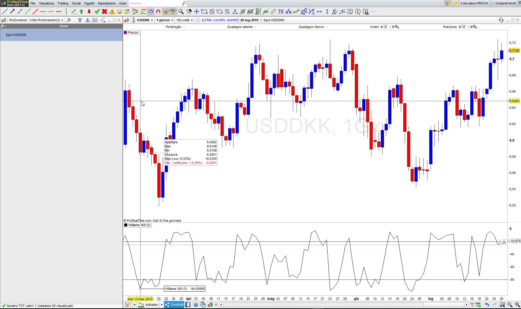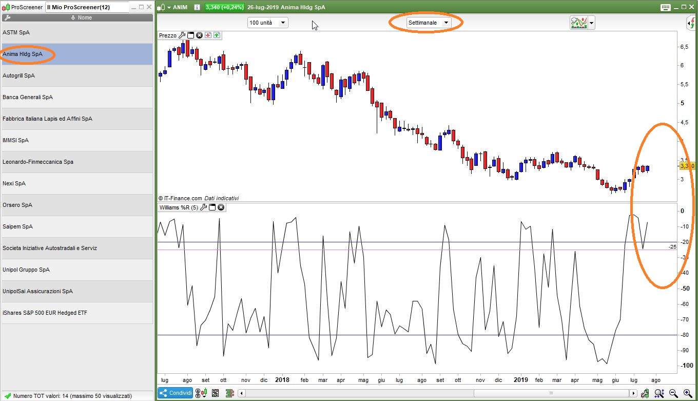 si ho messo sul grafico l’indicatore ma non torna con quanto osservo nello SCREENER