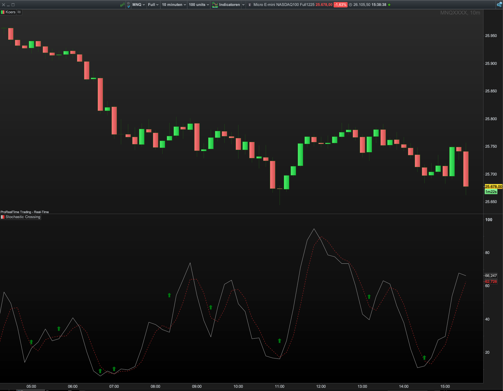 Estoy intentando programar cruces de estocásticos al alza. Por ejemplo, Estocástico[5, 3] cortado al alza pero que ese cruce sea válido siempre y cuando sea, por ejemplo, por encima del nivel 80.