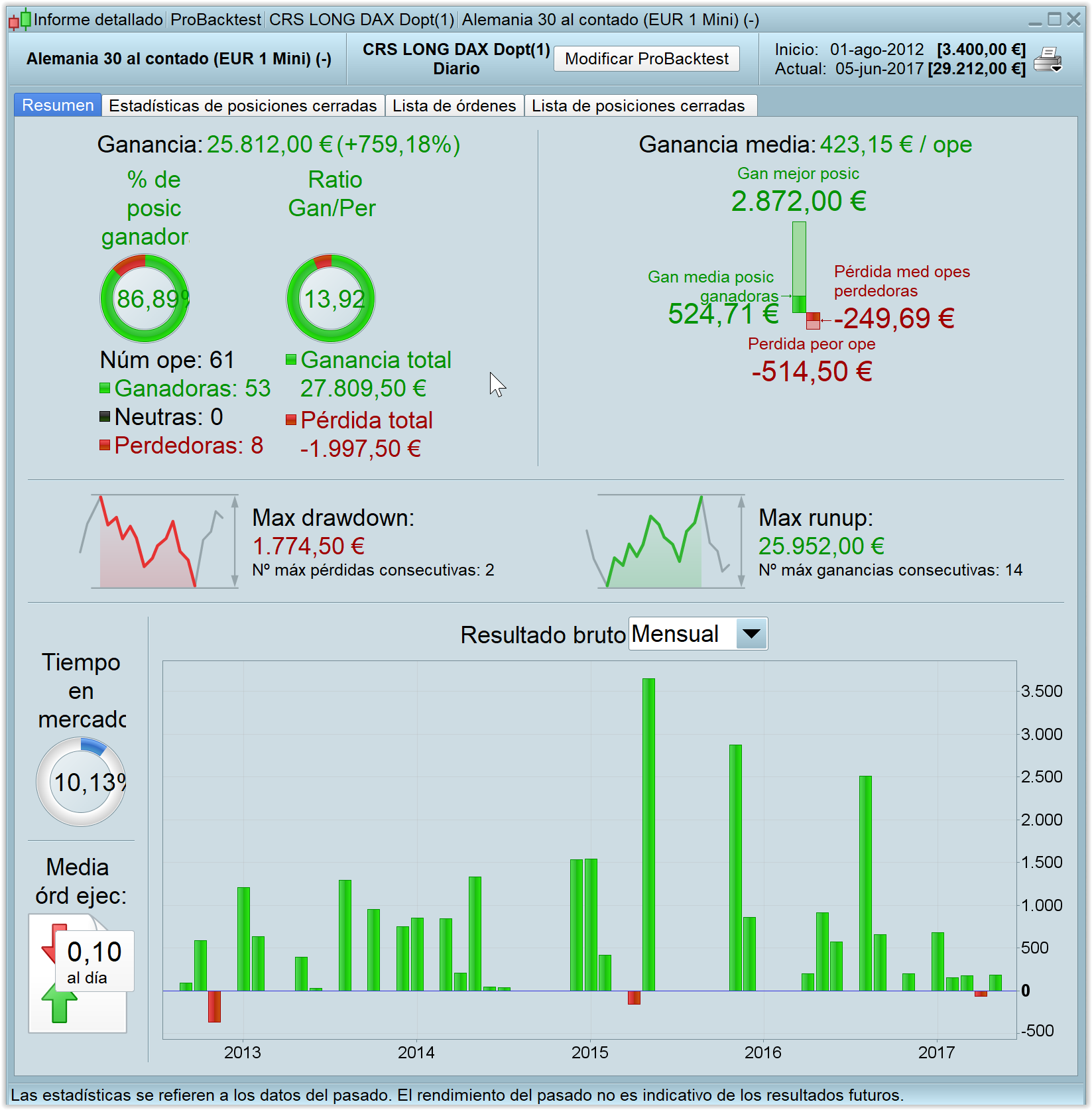 I’m using here 5 contracts of the miniDAX, 1€/point.