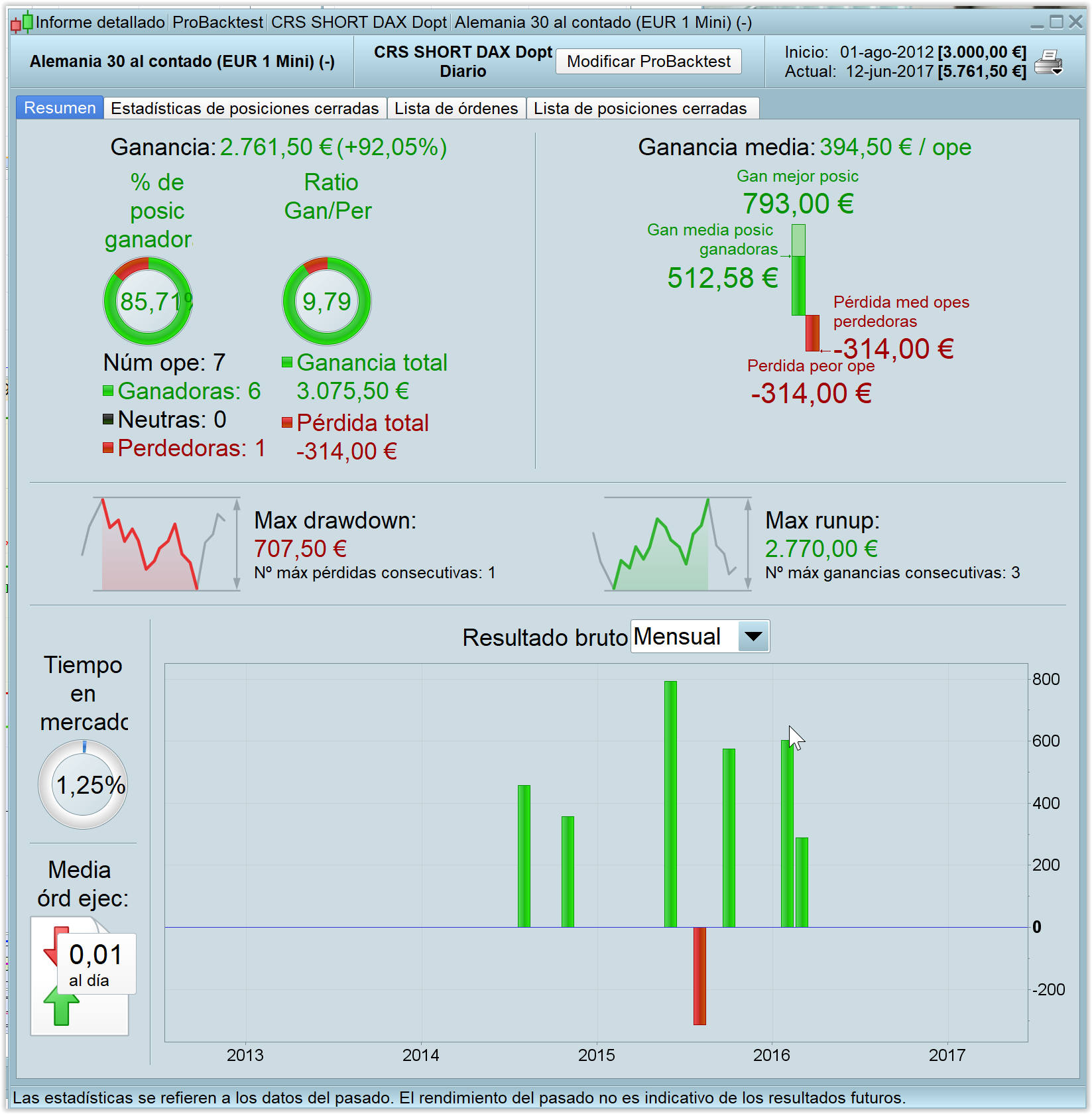 As the DAX has normally long trades, the short versión does not have many trades: only 7 trades in 5 years. But I attach hereby the short version optimized. I only optimized a little bit Entry, Exit and TGS, not more.