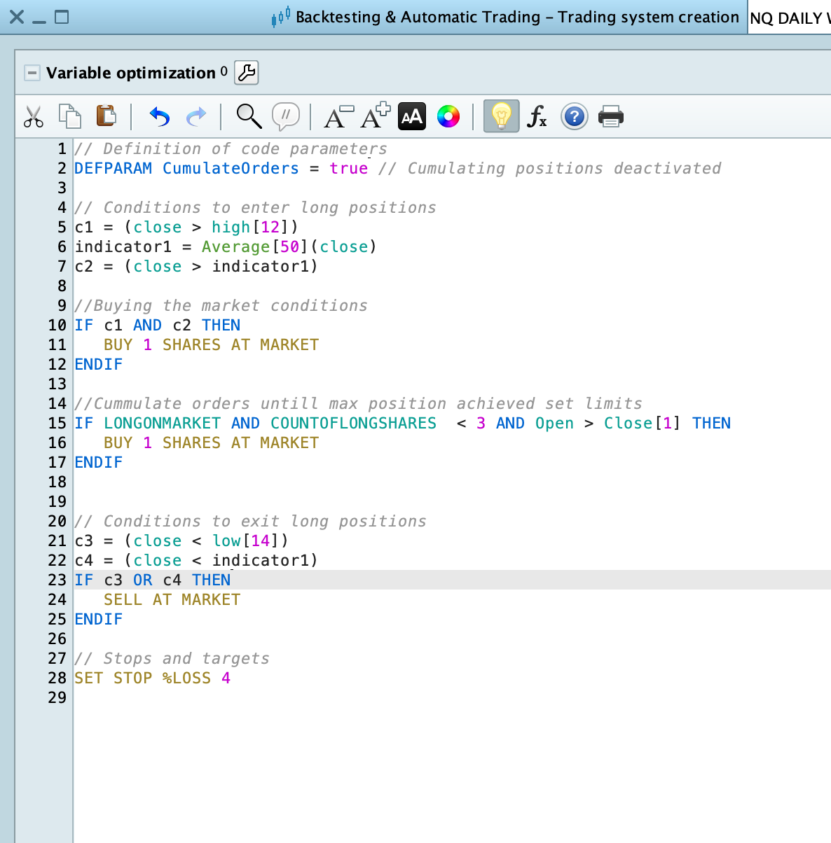 When the conditions c1 and c2 are true, a position is opened. However, these conditions can remain true for multiple bars (days), which causes the system to keep opening new positions as long as the conditions hold…