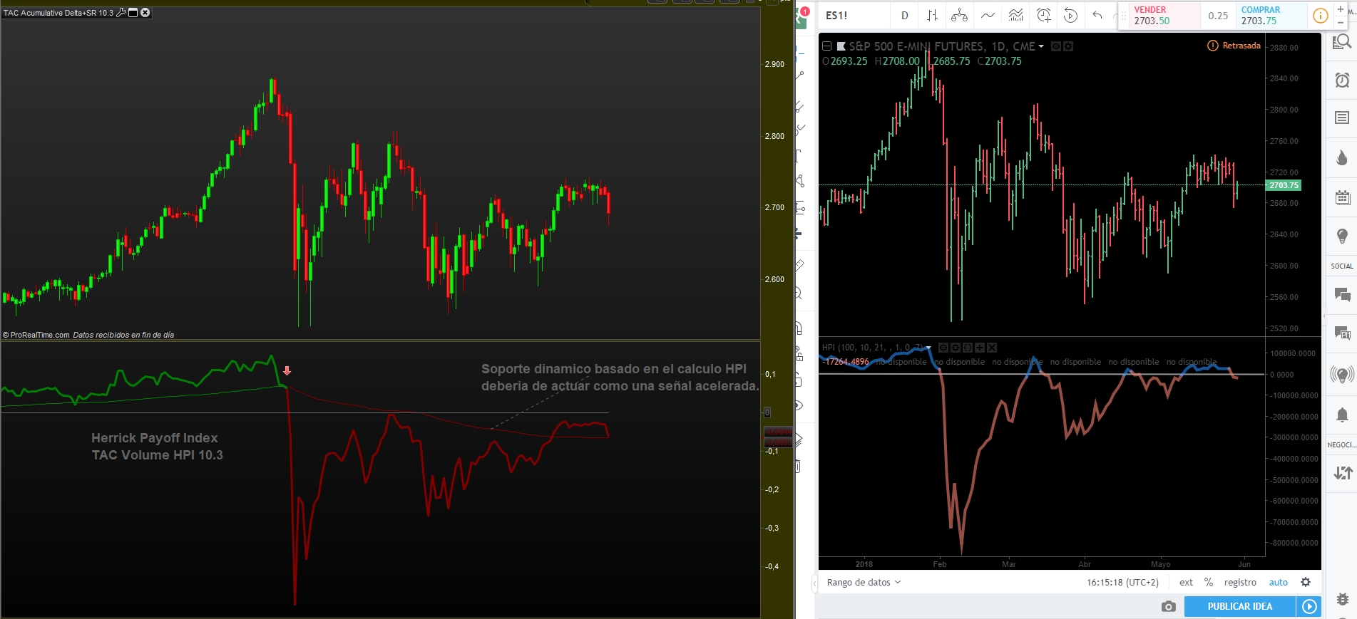 Este indicador lo publicare a finales de semana es el famoso HPI, de Herrick Payoff Index, según su creador solo funciona en Futuros… pues ahora funciona también en acciones Indices y todos los mercados menos Forex para prorealtime.