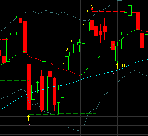 When I entered a new date and time, there appeared a yellow arrow in the chart and with each new bar the number mentioned here was increased.