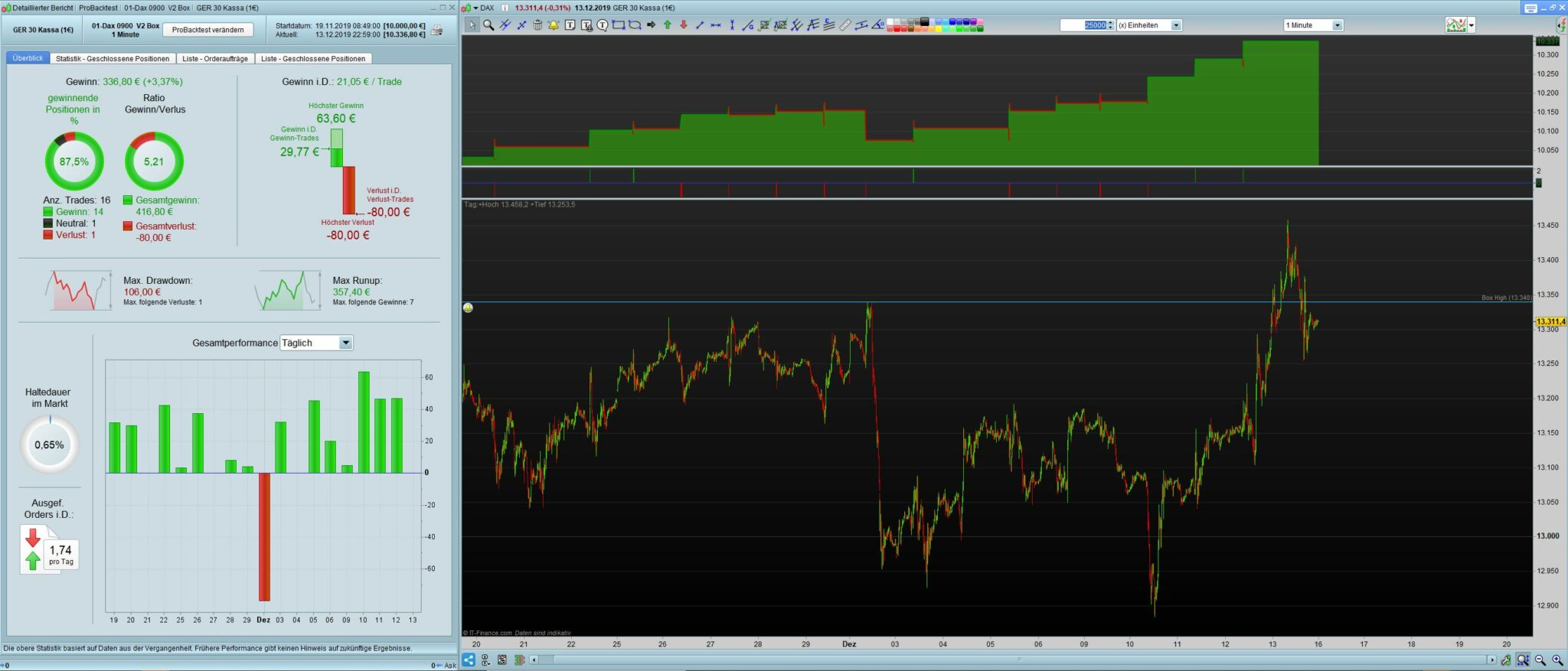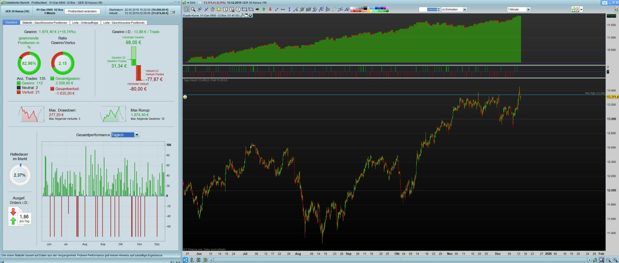 Ich finde es sieht nicht schlecht aus Basis Dax 1 min 200.000 Einheiten