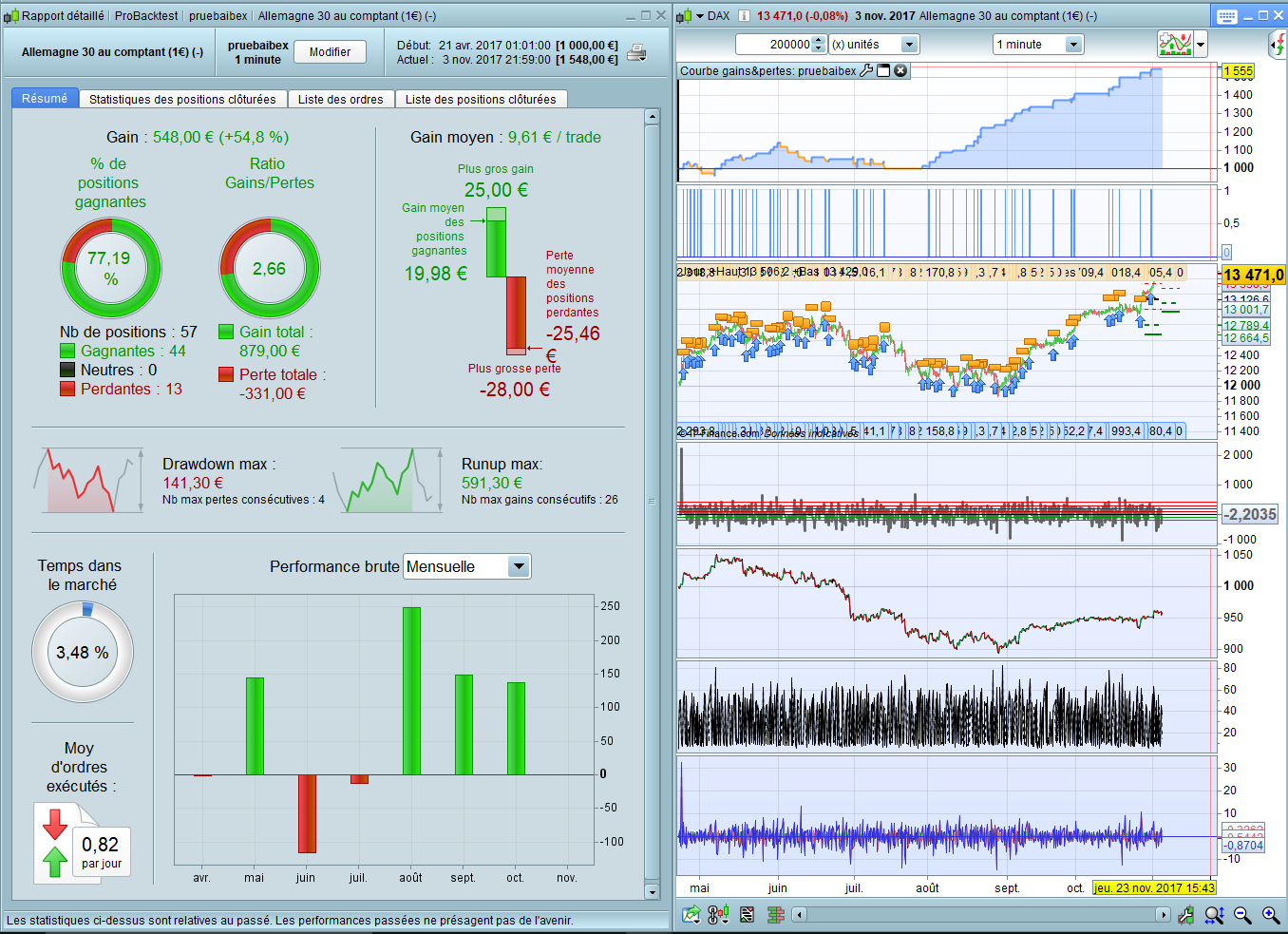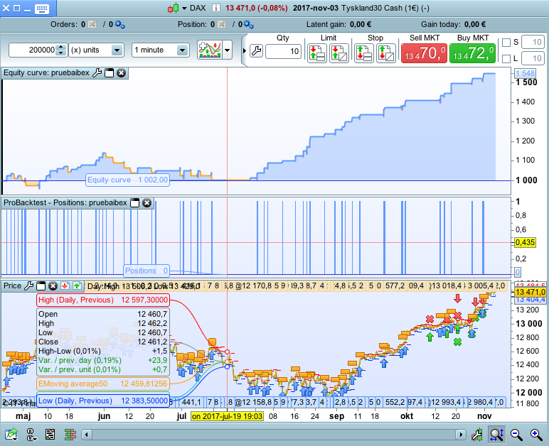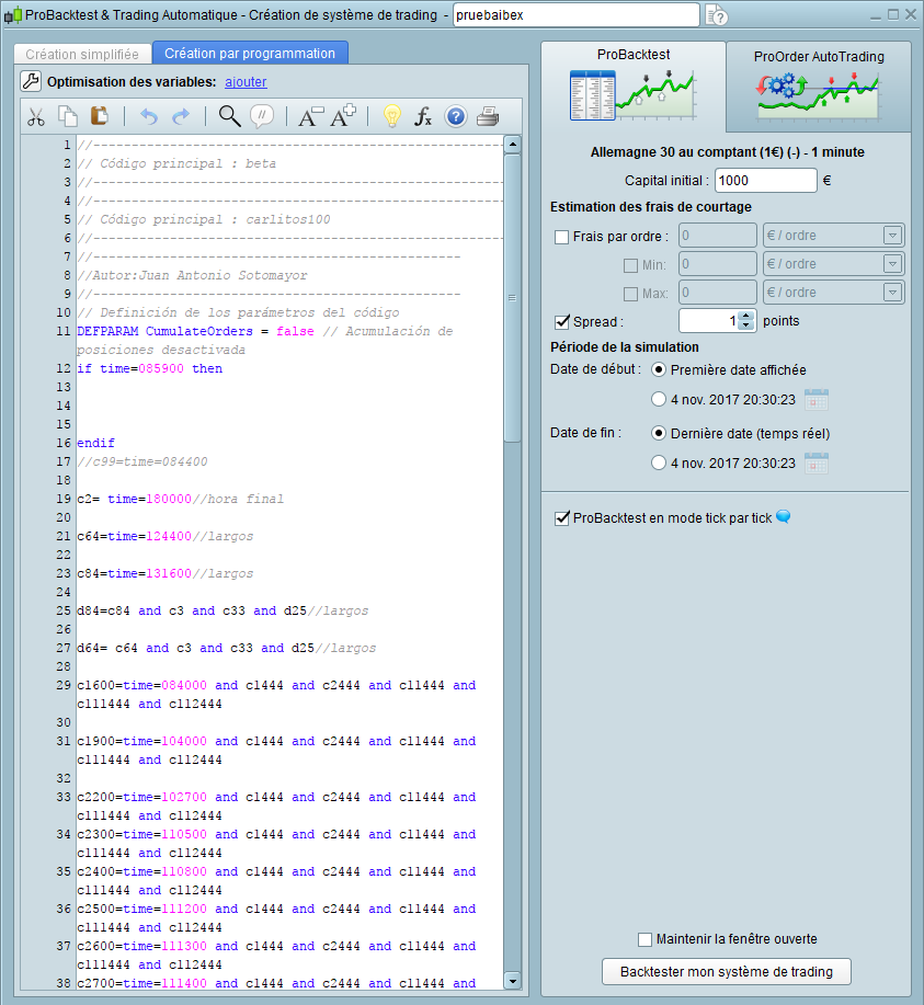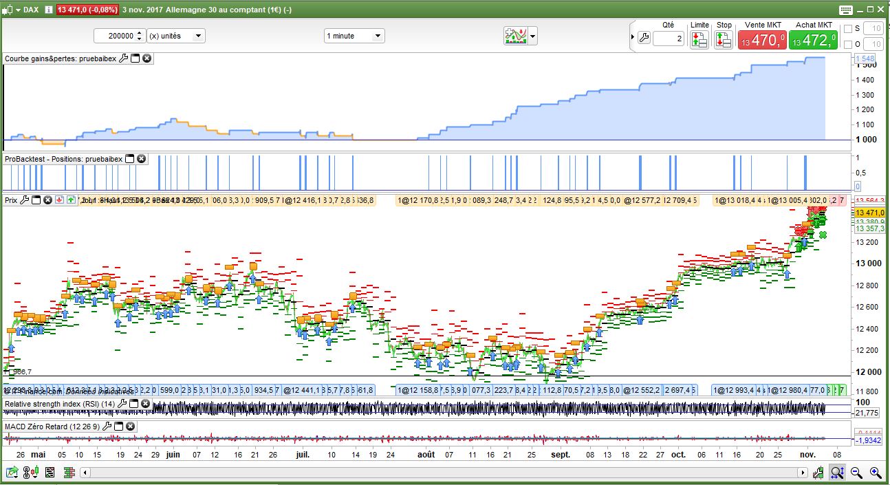 Had to modify the line regarding the call of the “xoindicator”, which is already define at the beginning of the code under the name indicator xo, if I’m not mistaken. By the way, Dax has a bid-offer of 4bp if my memory is correct, making the winning rate drop from 100% to 90% on 200k bar (still very impressive). Unfortunately, nothing understood from your code, so hard to get more confortable with it, but great performance Juanan!