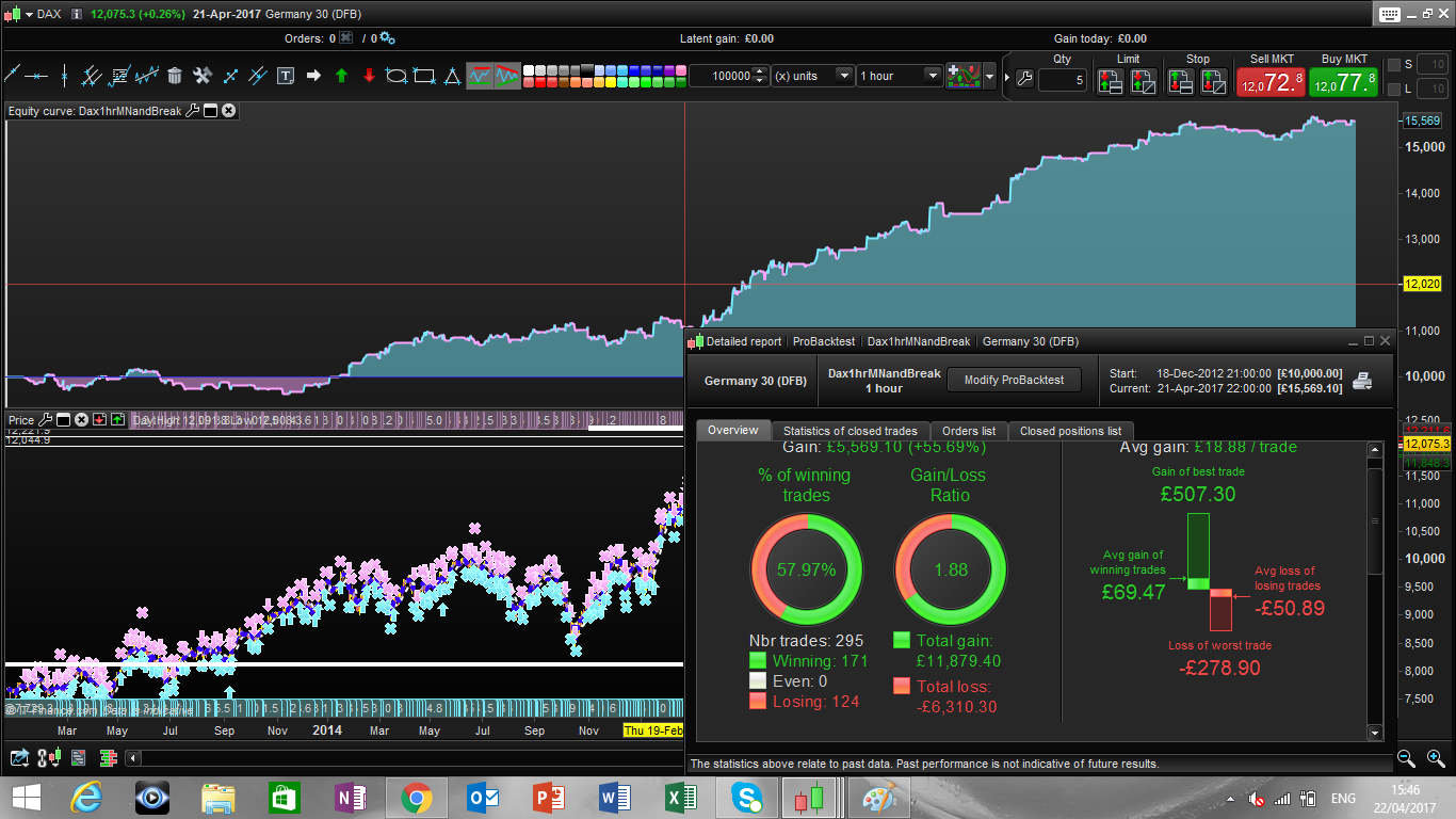 - although the strat is active between 8 and 21h, you put a spread of 1pt. It inflates the results a bit. During 8 and 9 / 17h30 and 21, the stread by IG is 2pts